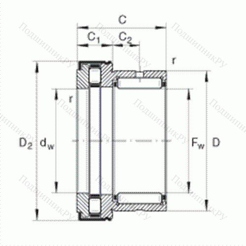 Подшипник комбинированный с короткими цилиндрическими и игольчатыми роликами NKXR 50-Z
