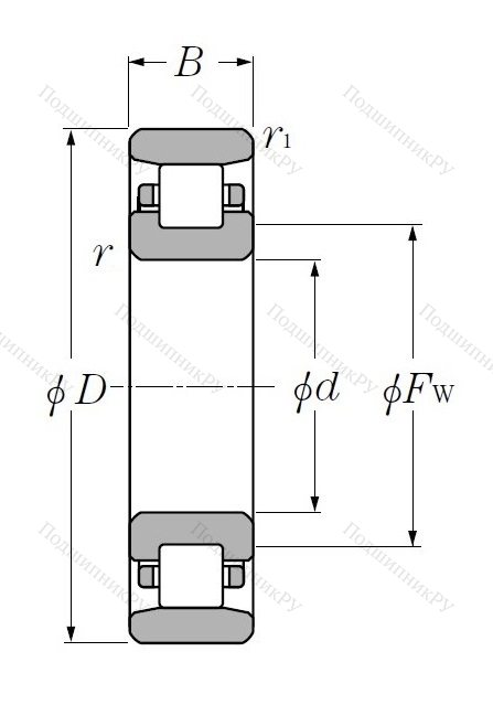 В зависимости от модификации подшипник имеет различную конструкцию: тип N рассмотрен выше, NJ – имеет уширенное внутреннее кольцо, NU – уширенное внешнее;