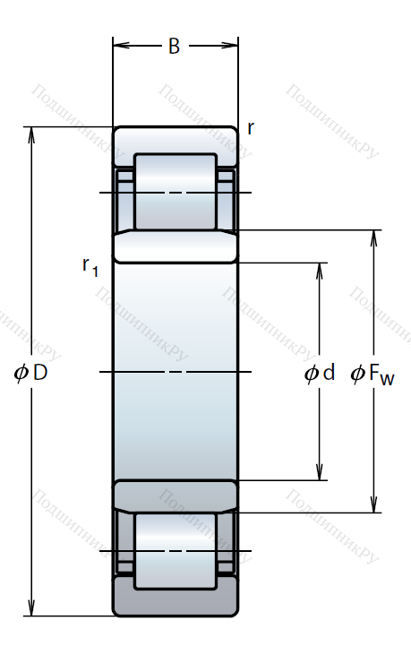 Роликовый цилиндрический подшипник NU 216 ET, это разновидность однорядного роликоподшипника в метрическом исполнении.
