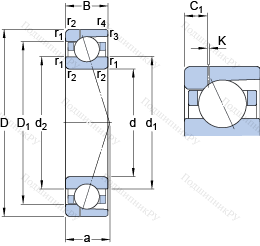 | Номинальная динамическая грузоподъёмность | C | 87.1 | kN | |